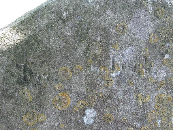 | Another slab, almost completely overgrown, shows: "[? covered]emory of Simon Hathaway Tu[rk] Who died April 1 [? covered]" |